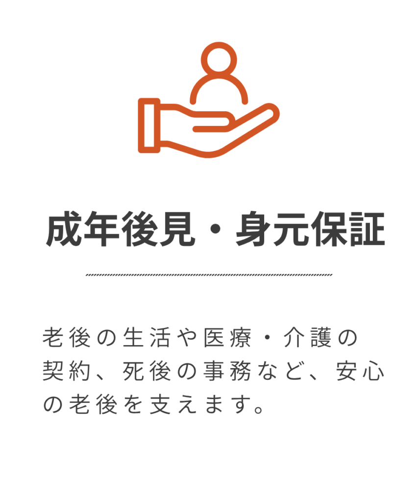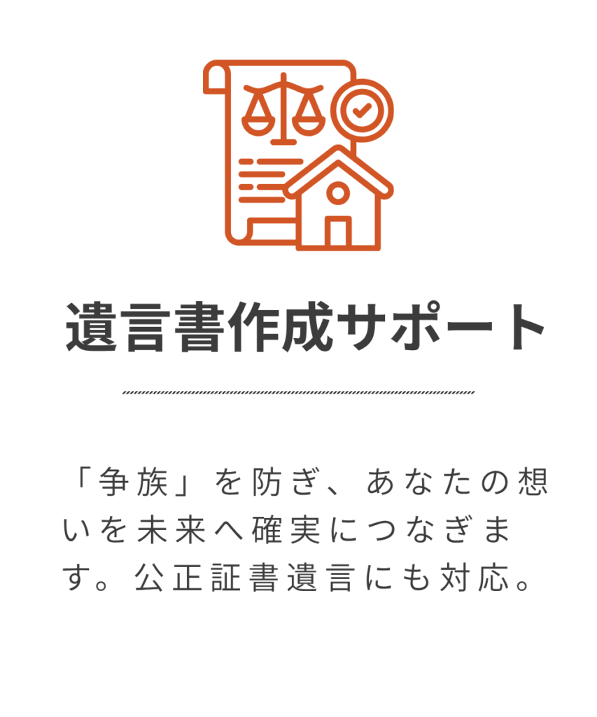 | 事業内容 | 遺言書作成サポート、相続手続き代行、家族信託組成、任意後見契約、その他終活・法人関連手続き |