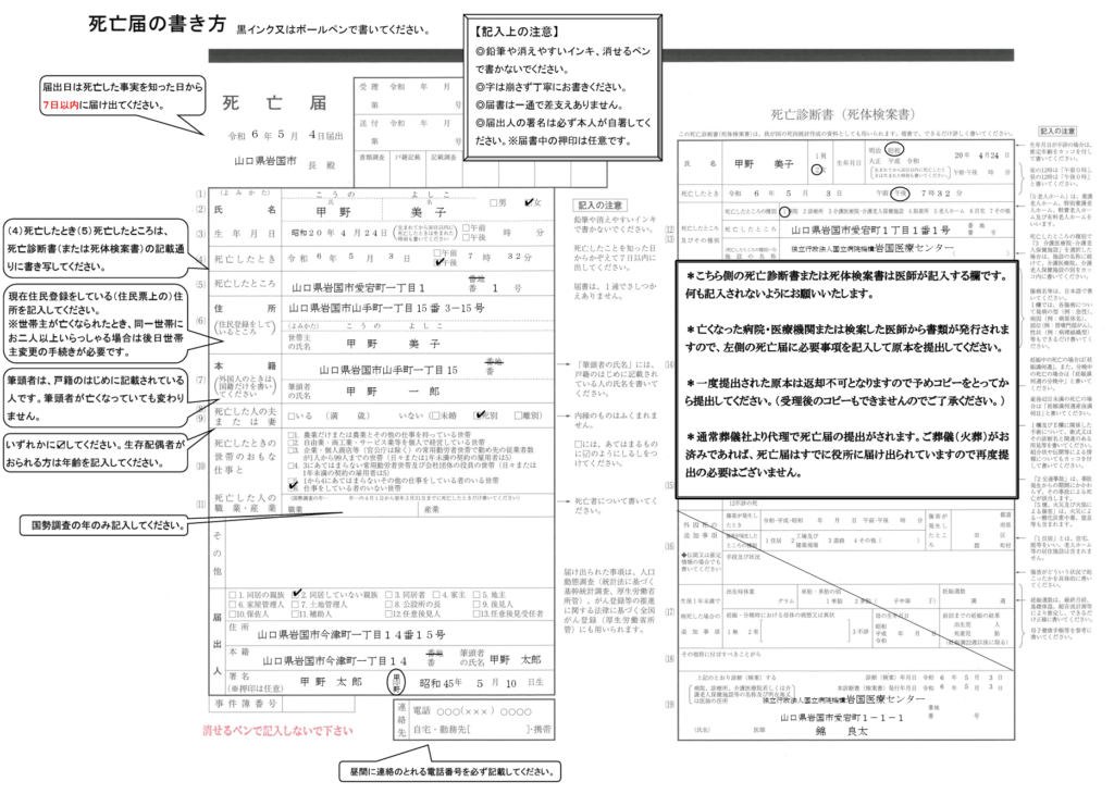 • 死亡届(医師の死亡診断書と一体になった用紙)